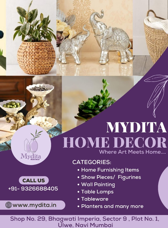 Mydita Home Decor offers a wide range of home decor products, including handcrafted items like planters, ceramic decor, showpieces, and windchimes. Their collection highlights artisan-crafted pieces such as Sabai grass products, ceramic items, and polyresin figurines, aiming to bring both elegance and functional beauty to interior spaces.
